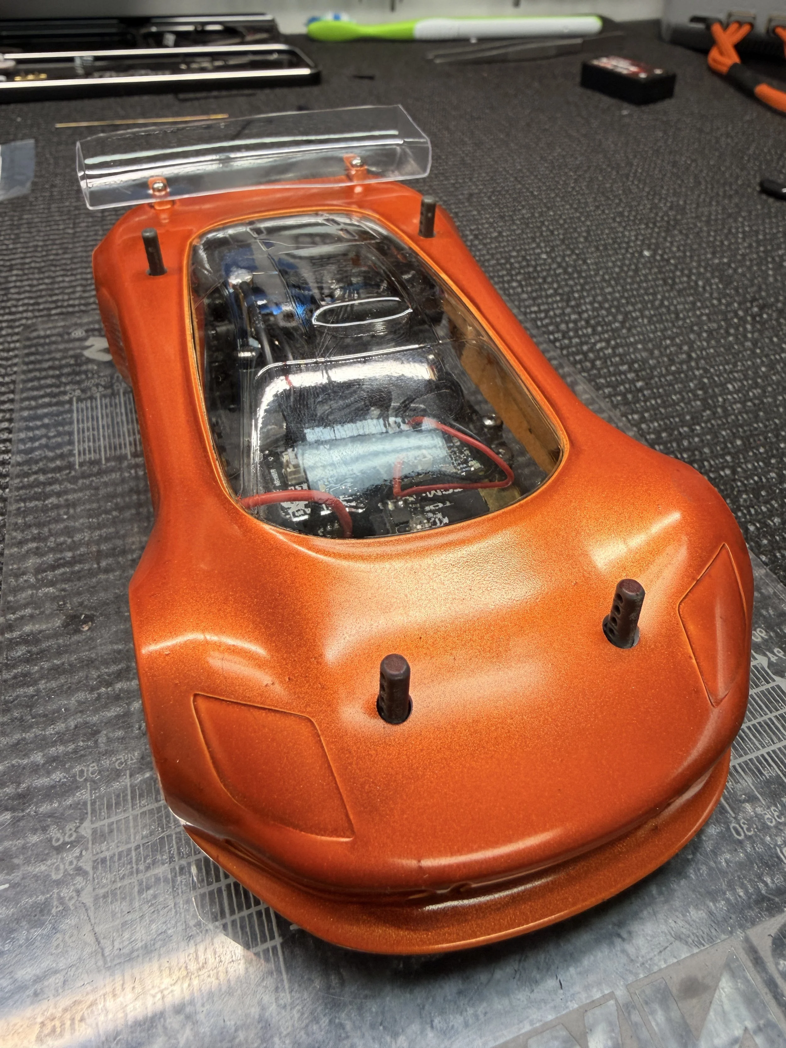 I don’t do much hard body racing these days but having ANYTHING different Han the Jom body was worth some testing. Overall the body seems fine. Much lower in profile and it feels as close to a lexan body as any hardbody I’ve tested. It’s was hoping for slightly lighter but it’s fine.